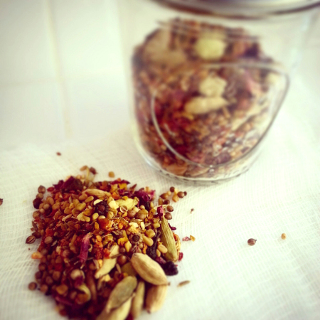 This little trick wakes up the flavor in your whole spices. All it takes is a pan and the spices plus heat. Simply place your whole spices such as cumin seeds, coriander, cardamom, peppercorns…you get the drift….in a dry pan and turn the burner on underneath.