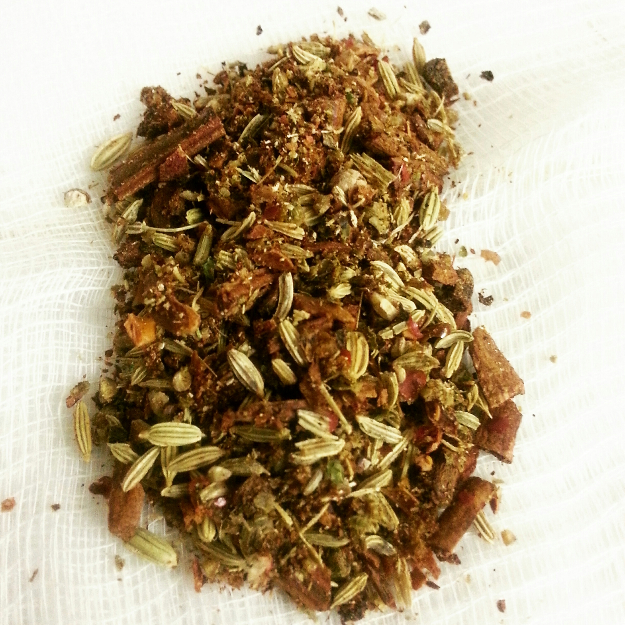 Admittedly, I am somewhat new to this term. I always just called it “spices in cheesecloth“, which describes it well. But once I learned the term (thanks Mom!!), I realized this concept has roots in multiple schools of cooking. I came to the concept via necessity. Knowing that cooking sauce and stock with whole veggies yields a great slow-cooking result, I figured whole herbs must add to the slow and low concept. But I got sick of all the straining and filtering at the end. So there you have it…I thought hey, wrap those whole spices in cheesecloth and tie the herbs by the stems. Make it easy on myself. Ha! I am not the first to think of it. But I’m excited when this kind of thing happens. I described this little technique to my mom, who promptly told me the term “bouquet garni”. Well, I’ll be dipped in stock! You can even use these handy little muslin bags instead of cheesecloth.