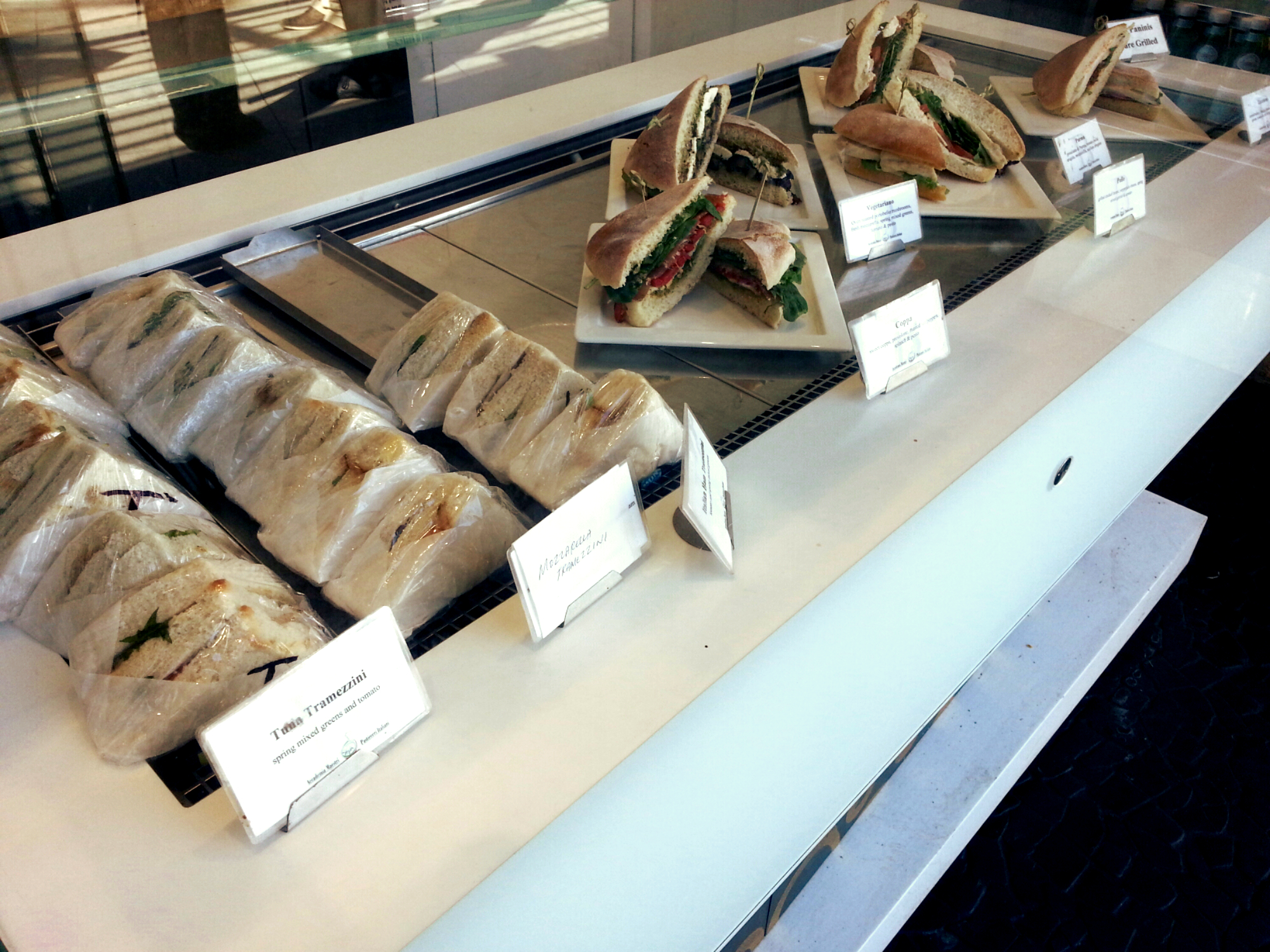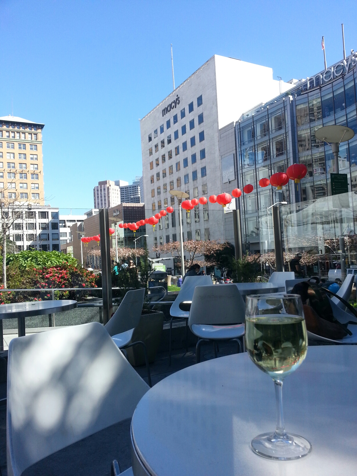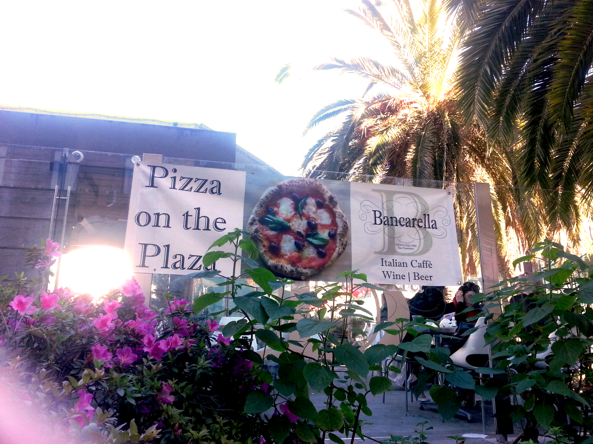 Sunny Afternoon Wine Break on Union Square at Bancarella. Who could resist sitting in the sunny perfect air and gazing at the blue sky and Palm Trees in early March? Not me. Bancarella serves sandwiches, baked goods, fancy coffee drinks (I heard a few people raving about their coffee concoctions) and some nicely selected Italian wines.