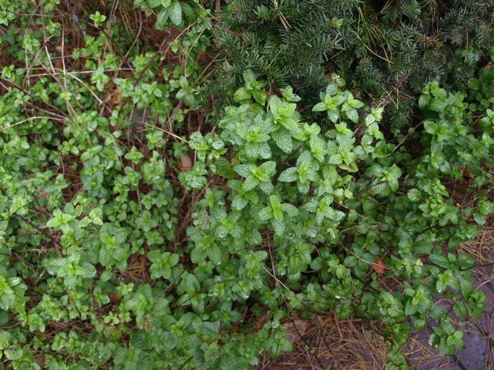 Fresh spearmint or mountain mint with cucumber slices.