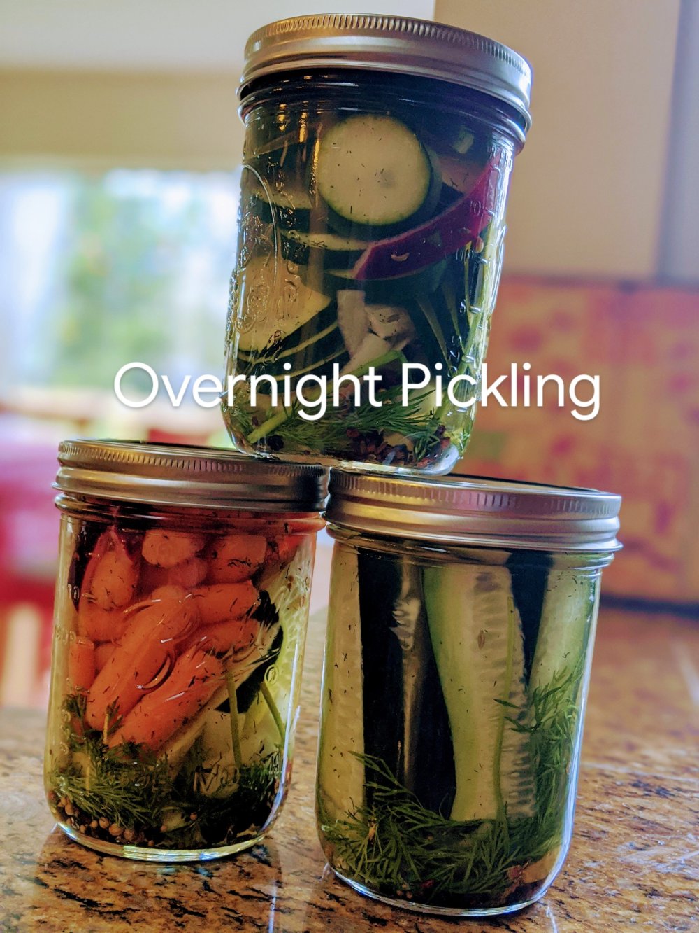 More Information: Overnight pickles are also known as “cold pickles” or “quick pickles”. They taste different than those that are brined for longer periods of time. Intended to be eaten within a short period of time, they’re stored in the fridge. The flavor will be a bit less salty, and a bit more fresh and cucumber-like. They’re a favorite in my home, especially in the warmer weather months.