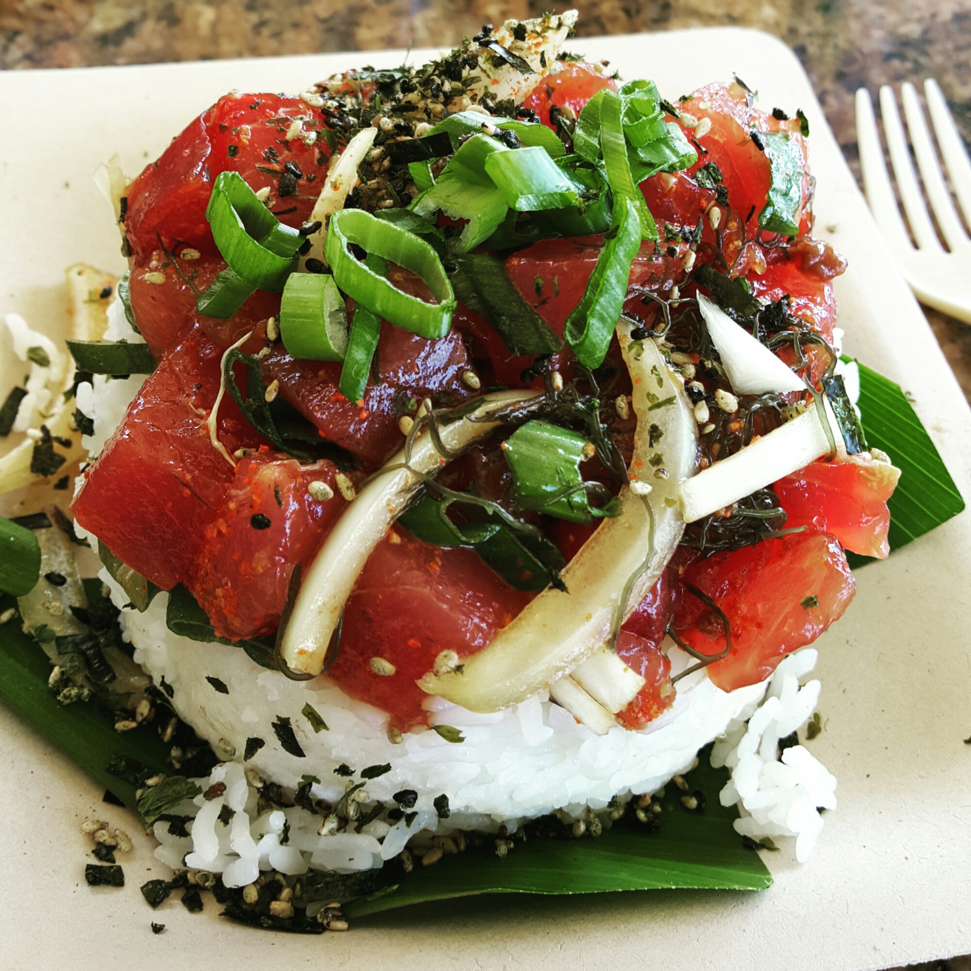 For those of you who love Poke, I highly recommend going to Hawaii. They get it. They have killer Ahi for it, and it is on every menu. Each place has a little spin on how they do it. You can even chat up the local Farmer’s Market fishmongers about ordering it for private delivery or events…and some might even overnight some right off the boat to inland Texas if you use your mainland charm wisely (yes…I have a connection now!). These photos are from our amazing trip to Hawaii last Spring in celebration of my parents’ 50th wedding anniversary.