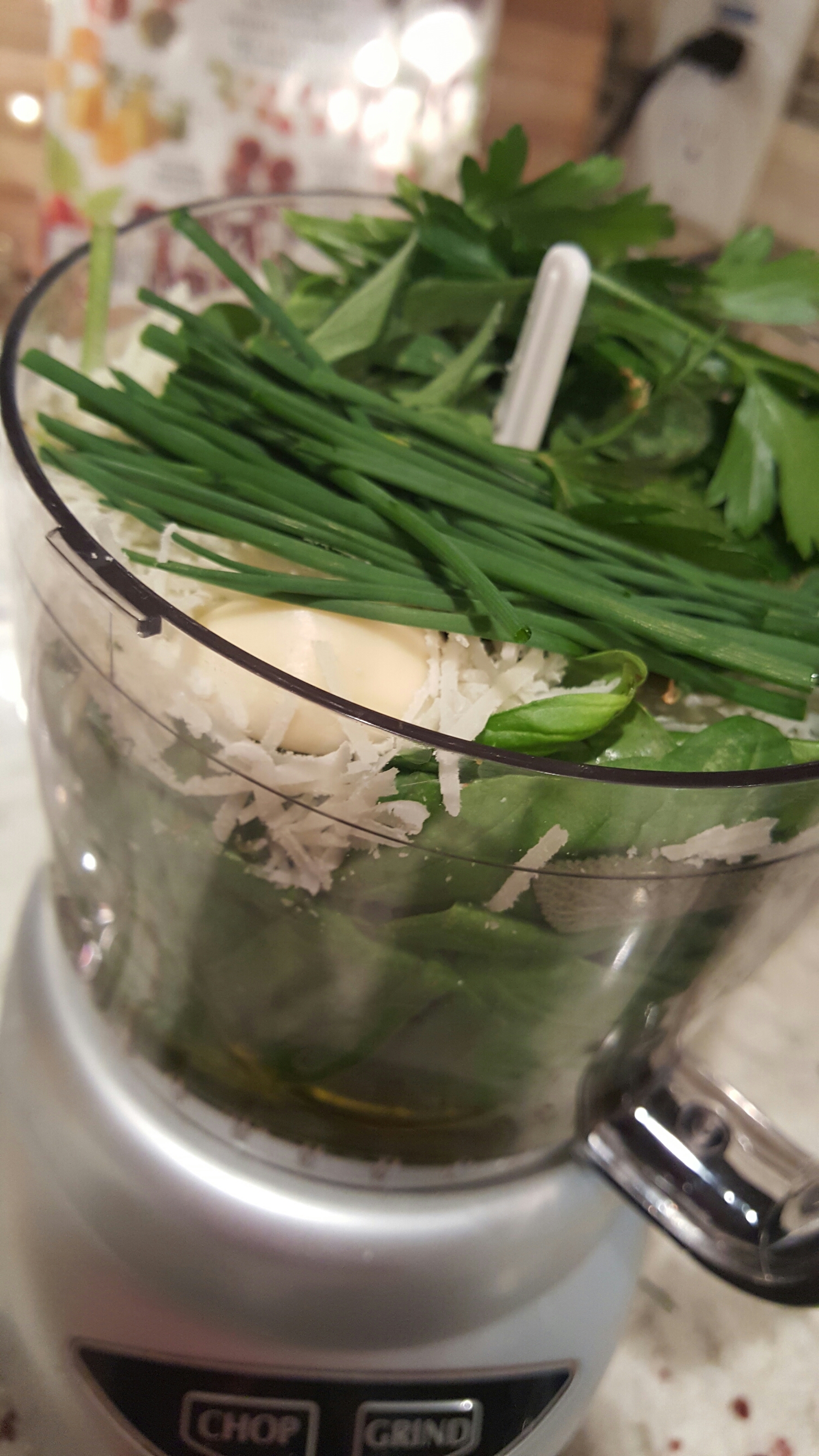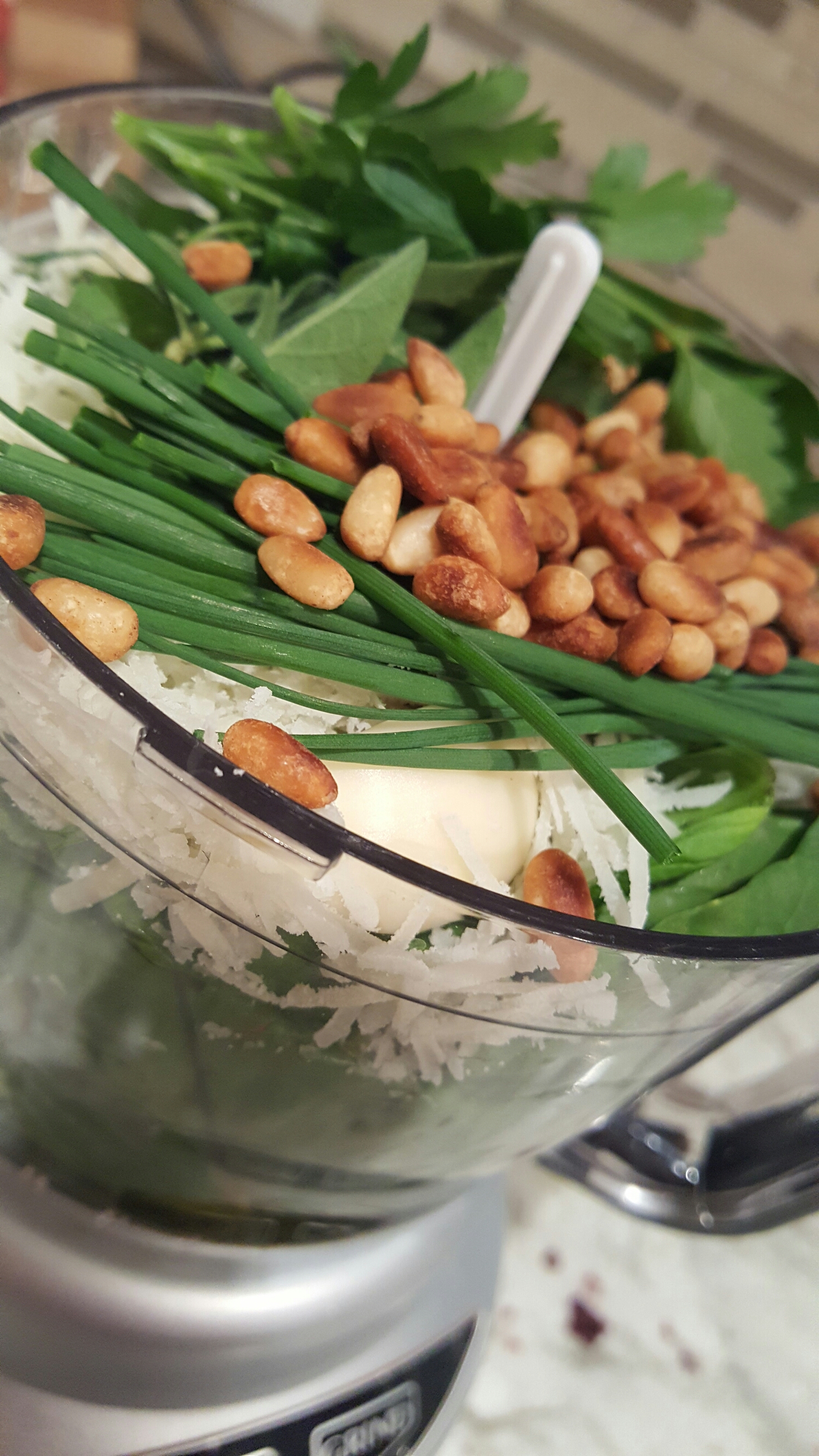 Try any combination of fresh herbs with this recipe, starting with at least half of the herbs as basil. As you find your favorite combos, try less and less basil. Try different tree nuts such as walnuts, almonds or pecans.