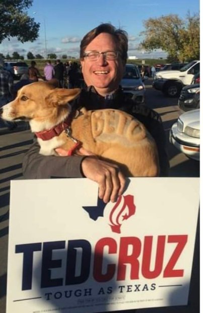 But wait, if you’re more red-leaning, canine diplomacy wins again. Duchess Fiona knows how to reach across the aisle to remind us all that even with very short legs, it is possible. Pictured here, Fiona is warming the heart of a Ted Cruz supporter who was protesting at the Beto rally.