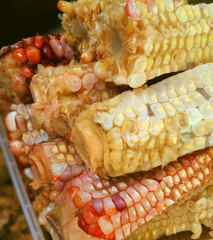 I know you’re here for instructions, and they’re coming right up, but I want to make a few things known for those less familiar with field corn. It is unlike regular corn in that the texture of the kernel contents is much more mealy and dense, and less juicy. One thing I learned in the process of making masa from mine, was that once the kernels were cooked and the skins removed from the kernels, I had made hominy. This means that at a certain point during this process, you can stop and save some of your batch for Pozole or any other dish you like with hominy.