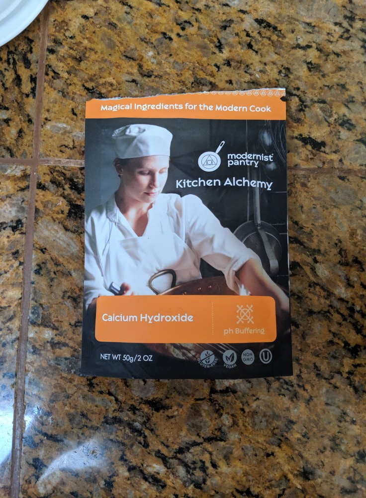 - Add calcium hydroxide to the saved water. This begins the process known as “nixtamalization” which is the origin of the word “tamale”, wherein the skins of the kernels are sloughed and made easy to rinse off. You gotta love science. Also, be aware that calcium hydroxide is dangerous if not handled properly. Please follow all instructions on your packaging.
