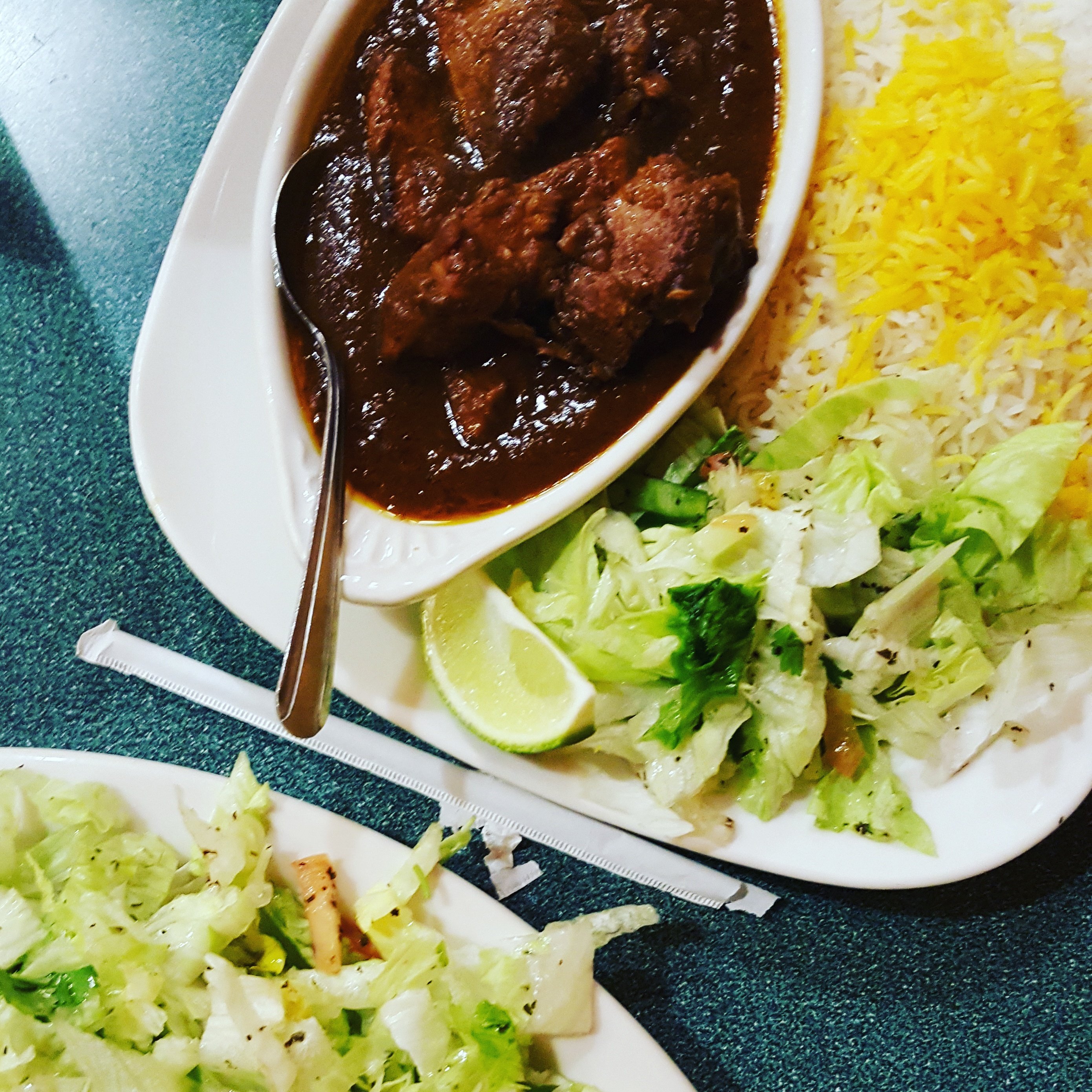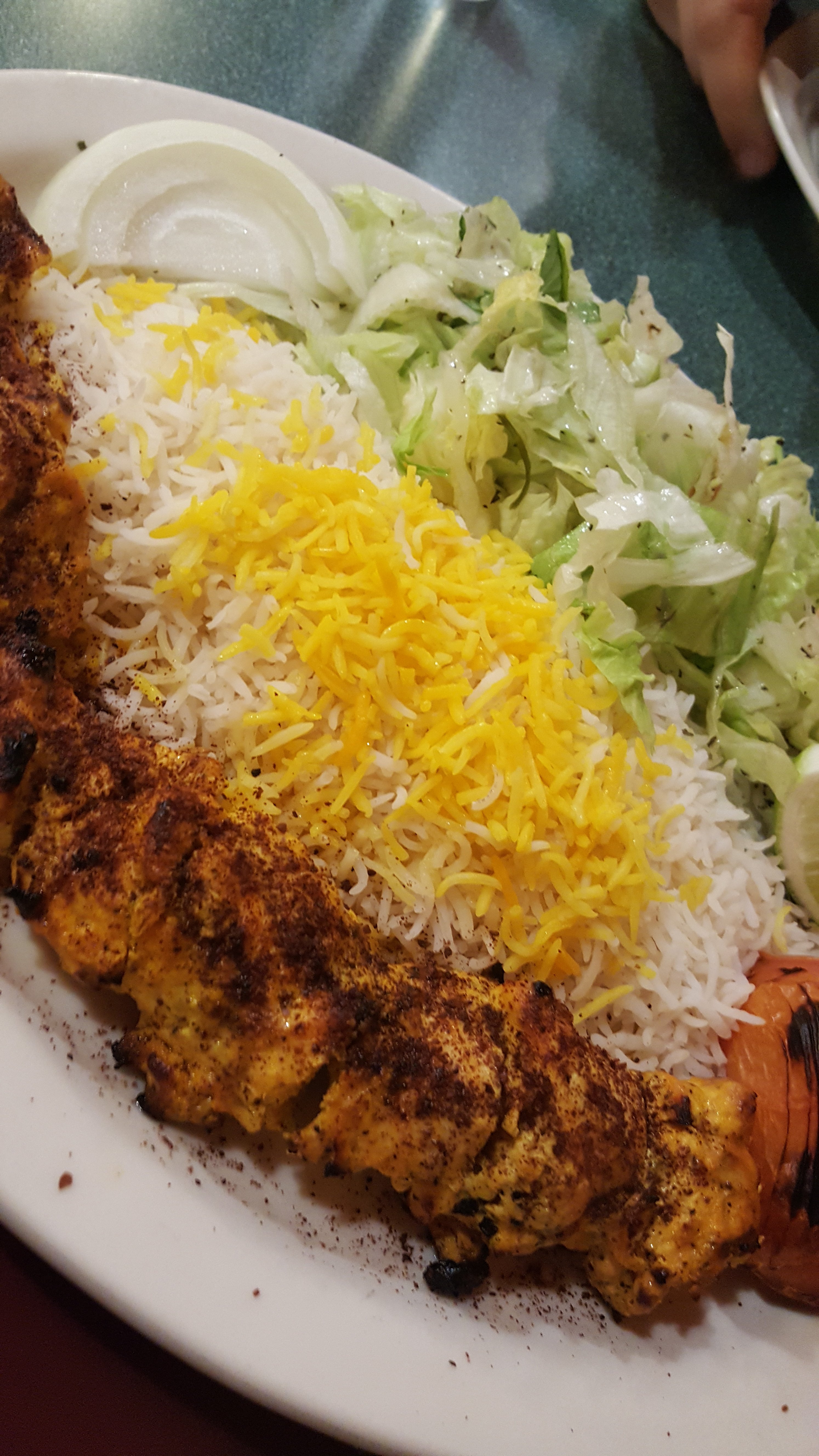 The food here is both gorgeous and very well thought out. The bright colors of the rice and fresh, ice cold salads and veggies contrast with the deep, rich flavors of the Persian grill and spices. The stews surprise with flavors that I personally wouldn’t have thought to combine. The staff members are like ninjas showing up just when you’re ready, and with plenty of enthusiasm and knowledge about the dishes. I always have questions, and they always have answers that help me select something amazing.