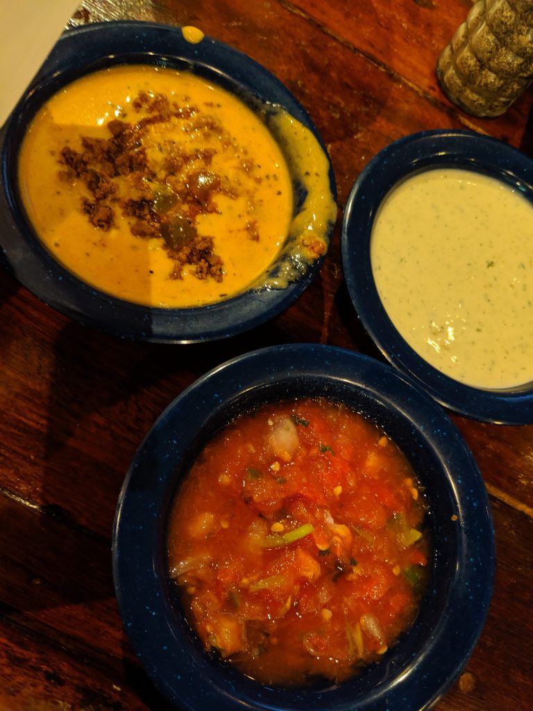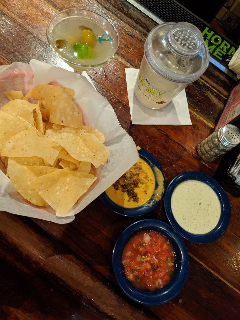 Weekdays they have a FREE QUESO BAR during their happy hour. They provide chips, pico de gallo, salsa, taco meat, and refried beans so you can eat your weight in Queso Compuesto (means queso with stuff, basically) and the free queso at happy hour is served in a converted car trunk. I mean, that gimmick alone should draw you in. This location has a huge outdoor seating area.