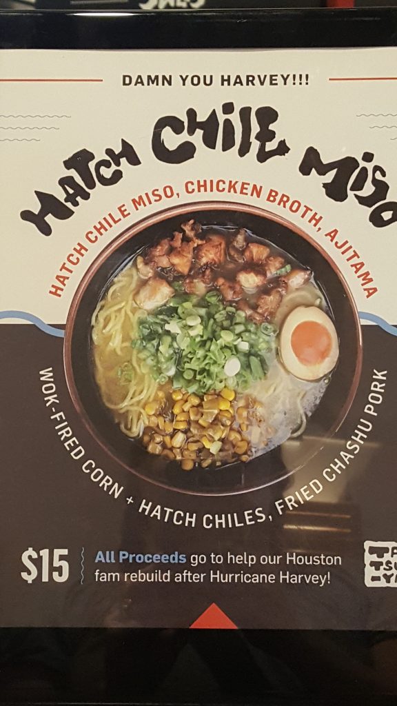 Arguably the best ramen in Austin. There are differing opinions out there, but I bet most of you agree. Here is the Hatch Green Chili Ramen that was a special dish and fundraiser for the victims of Harvey in Houston. It was, as expected, a spicy, flavorful, brightly flavored and nuanced ramen. Maybe someday it’ll be a regular menu item.