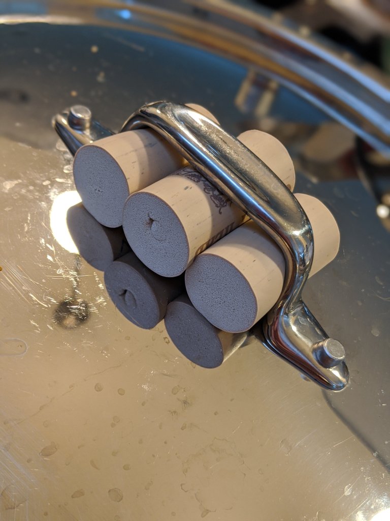 Cookbook Reviews Hot Tip for Pan Lids Posted by mdesignboutique on April 22, 2020 Stick some corks under the handles of your pot lids. Handle them without burning your fingers or needing hot pads. Real corks work too. If they get loose, run them through the dishwasher to poof them up. Share this: Click to print (Opens in new window) Print Click to email a link to a friend (Opens in new window) Email Click to share on X (Opens in new window) X Click to share on Facebook (Opens in new window) Facebook Click to share on Pinterest (Opens in new window) Pinterest Like Loading...