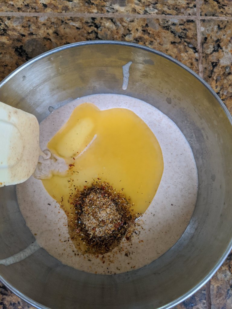 Day 3: Today I used some of our discard from feedings to make herbed crackers. They’re delicious but the method needs tweaking. Once I get it right, I’ll post the recipe here.