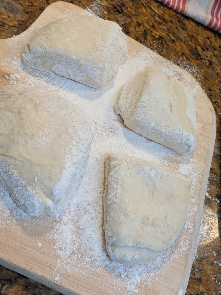June 4 – I made my first two loaf batch of sourdough dough. I split it in half and baked on loaf last night, and left the other half to keep on doing the dough thing so I can compare flavor/behavior of the two methods. I’ll bake the second half tonight as two short braids and one longer baguette.