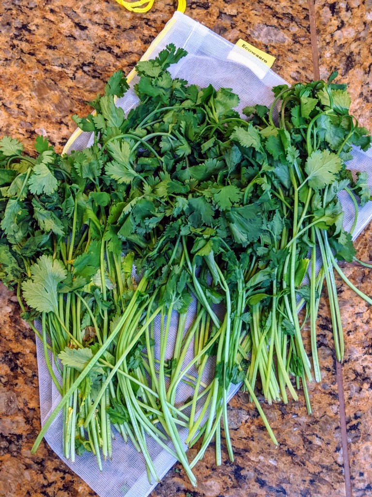 It never fails that I get cilantro for something I’m planning to make, and I end up with a big soggy batch of it wilted no matter how good my intentions are. I got sick of either skipping the purchase of a bunch of cilantro or tossing the mucky remnants of one I purchased. I have experimented with lots of different techniques for preserving it, and this is by far my favorite.
