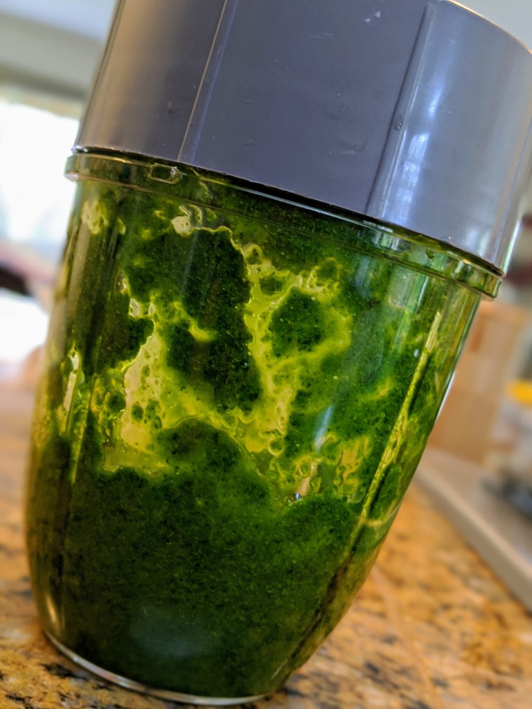 - Place washed cilantro, leaves and stems into a blender (or bowl and use a stick blender), or small food processor with water. Puree.