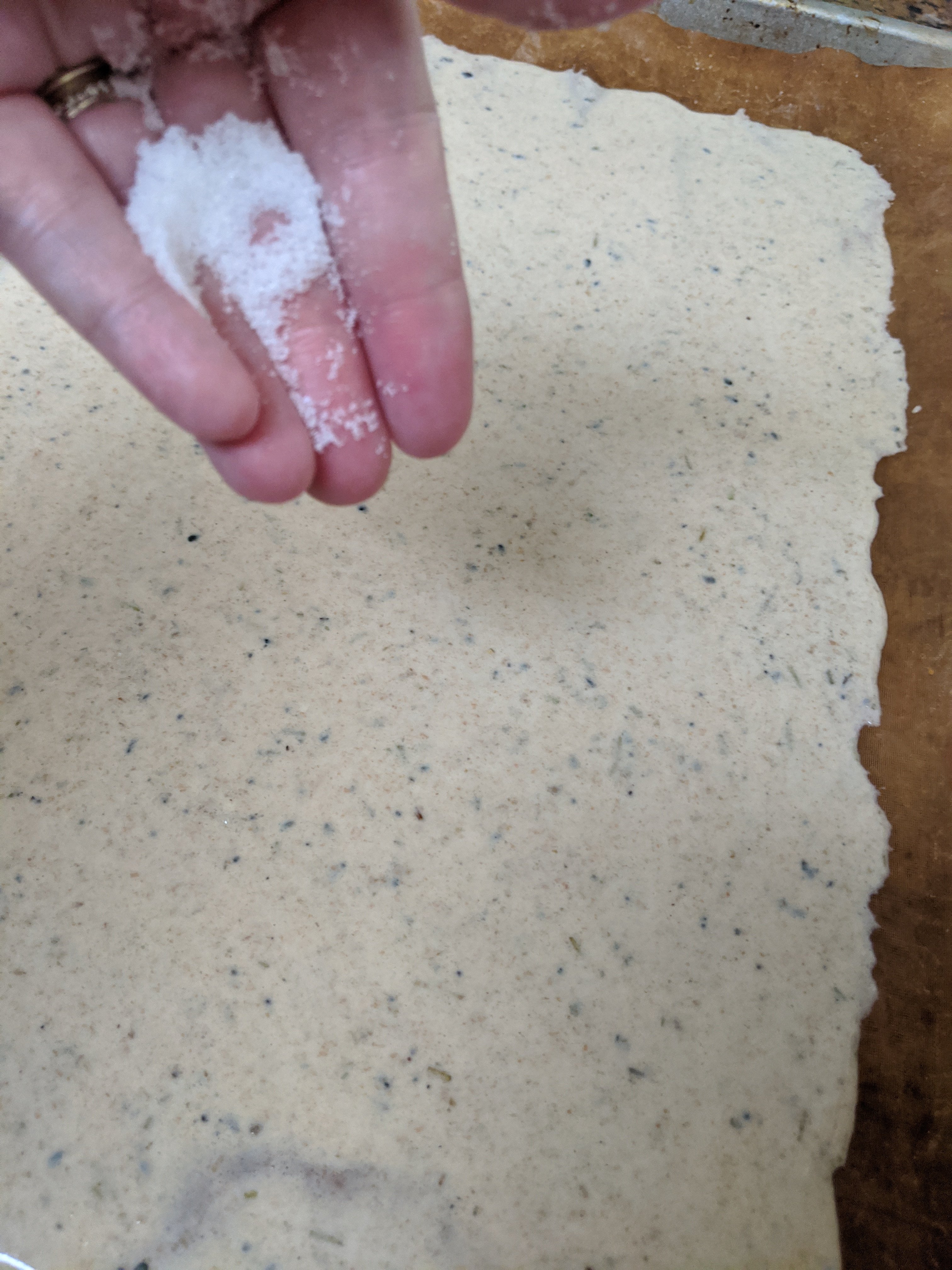 When sprinkling your food with herbs and spices, hold your hand high over the dish. Whether it is pepper or salt, or even grated cheese, it will fall more evenly. Start about shoulder height from the middle of your dish, and then move up. This works for finishing any dish.
