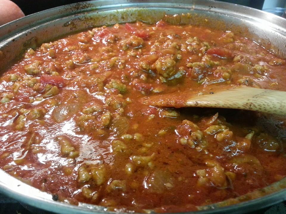 - 1 pound lean ground beef (or 1/2 pound beef, 1/2 pound Italian sausage)