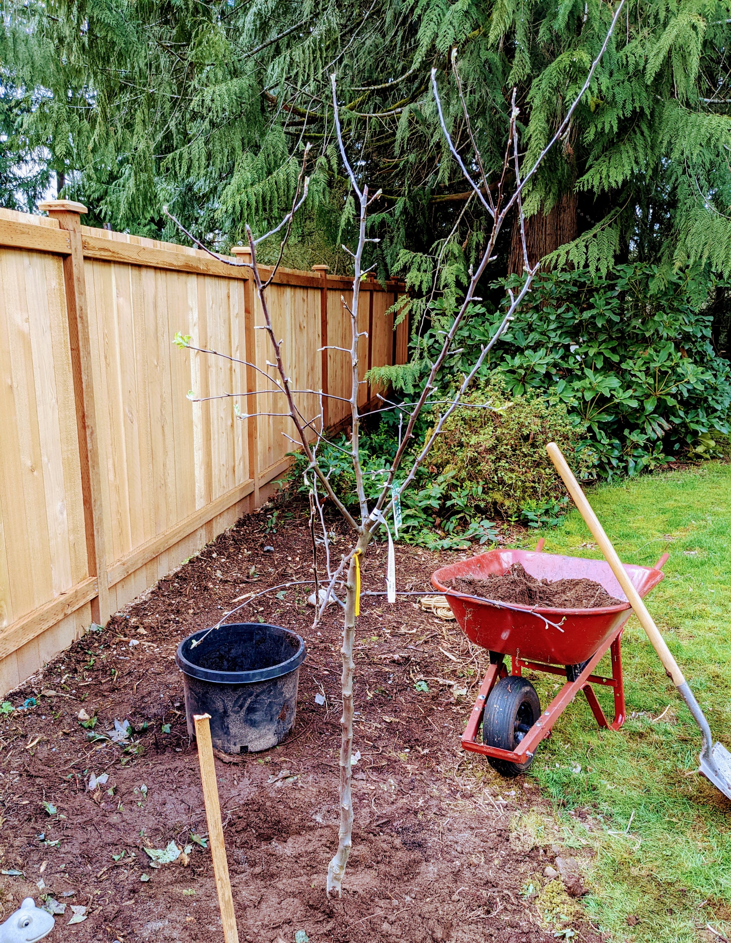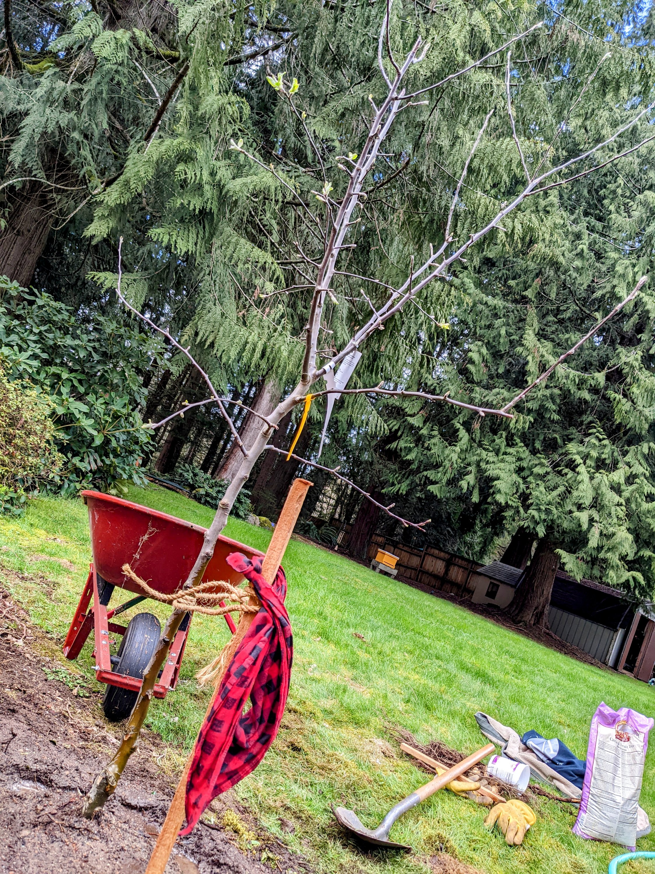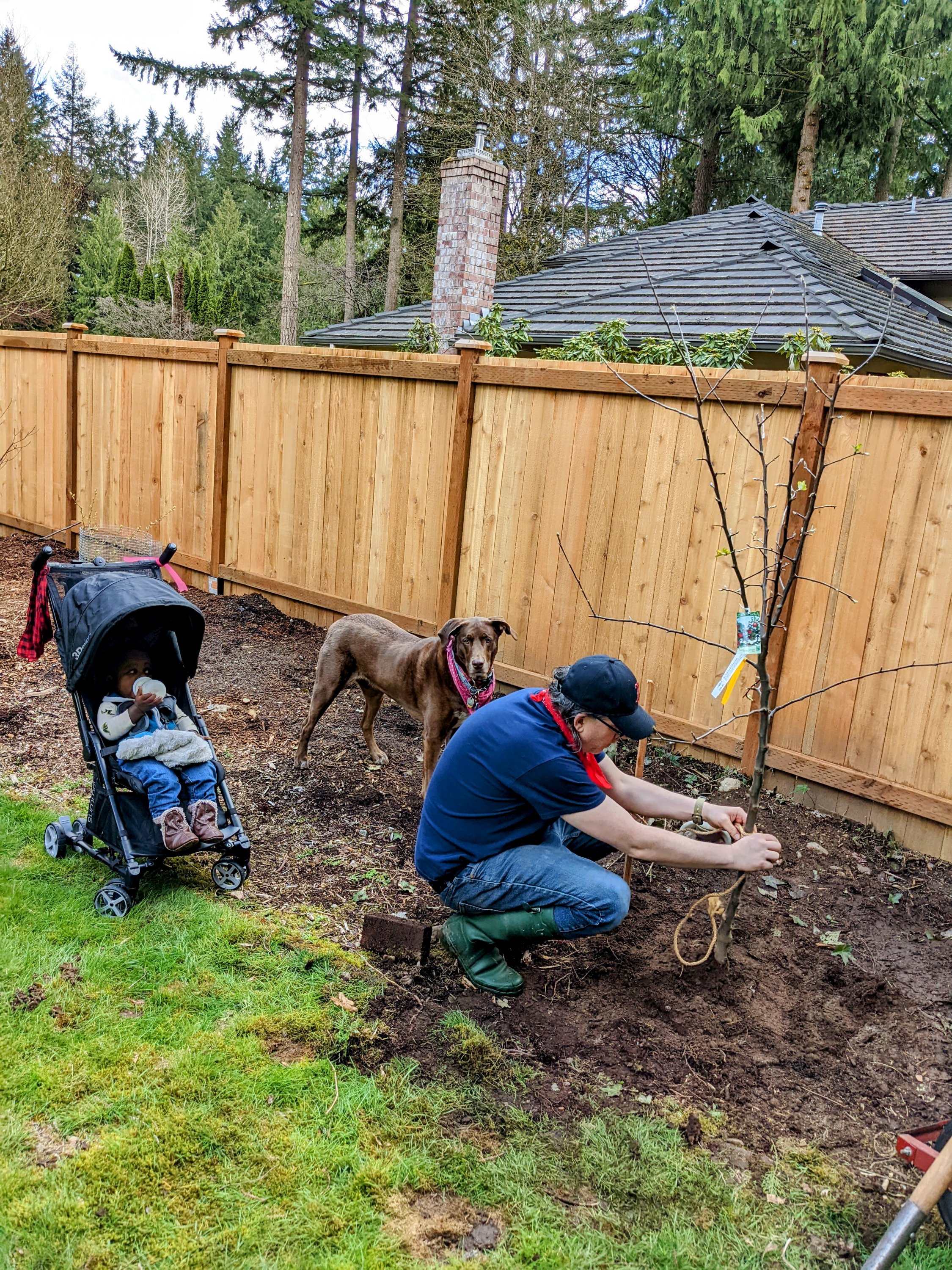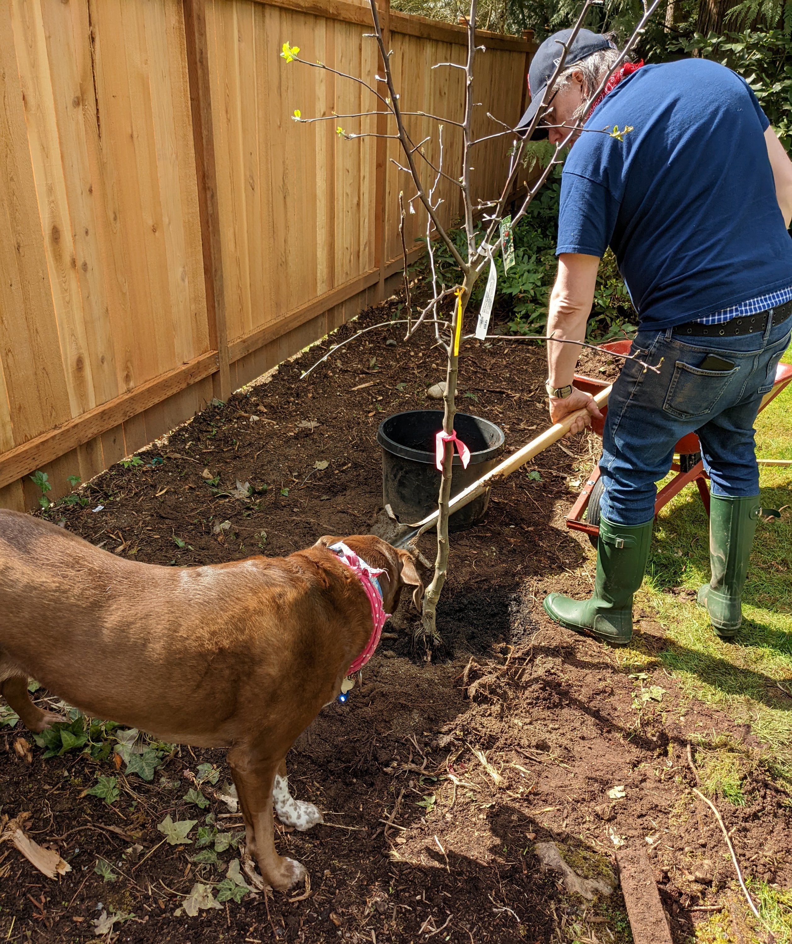 Today we planted a Gravenstien Apple Tree in our yard in honor of Sawdust Romeo, world’s best Black Lab. He passed in September of 2020. You can read my original post about that here, if you want to ugly cry.