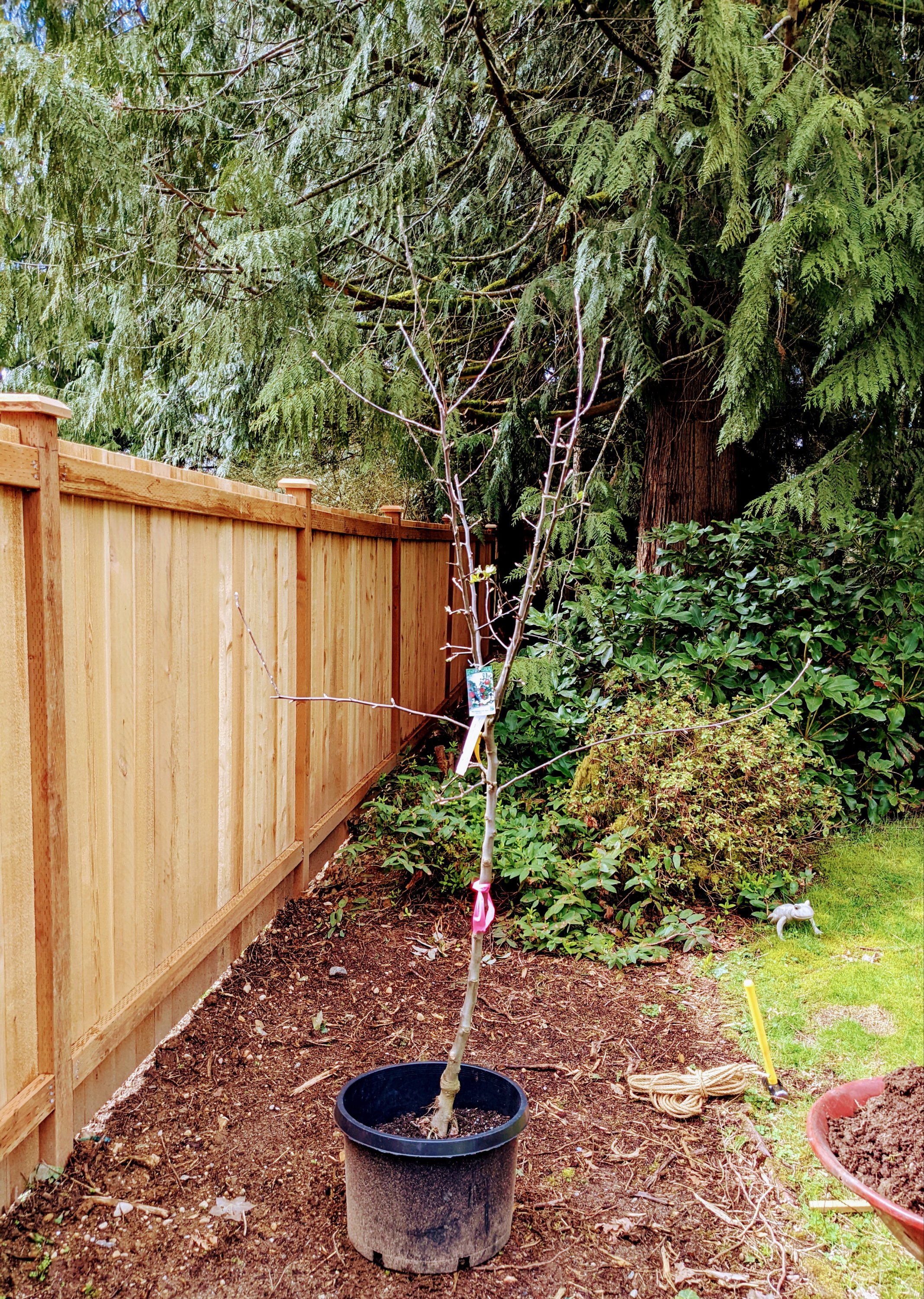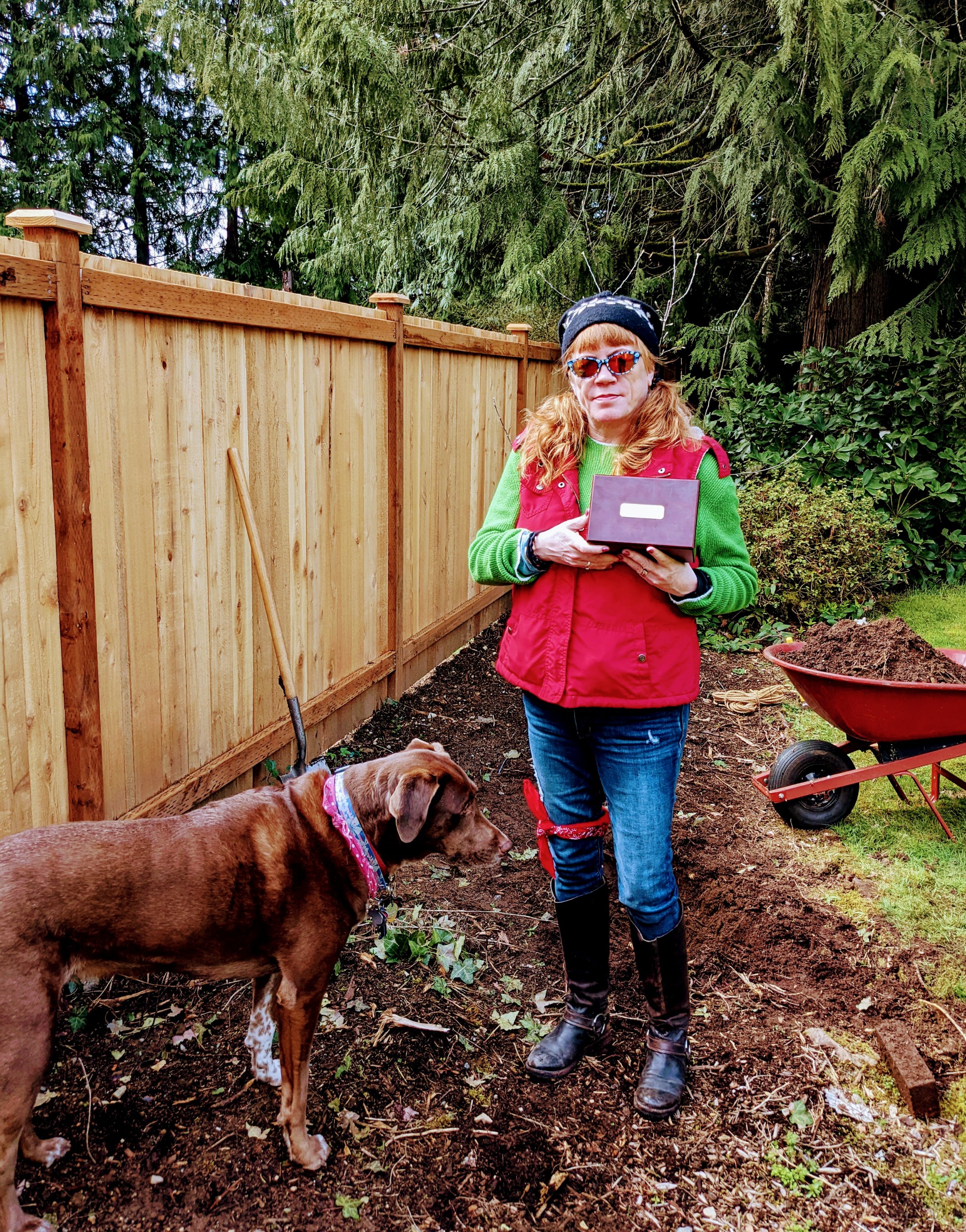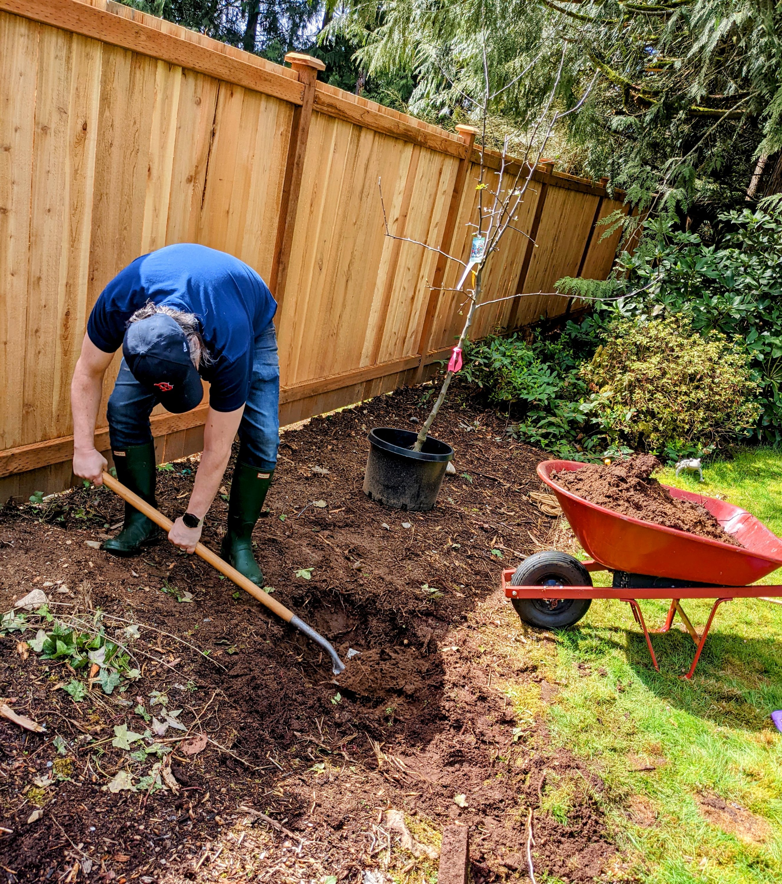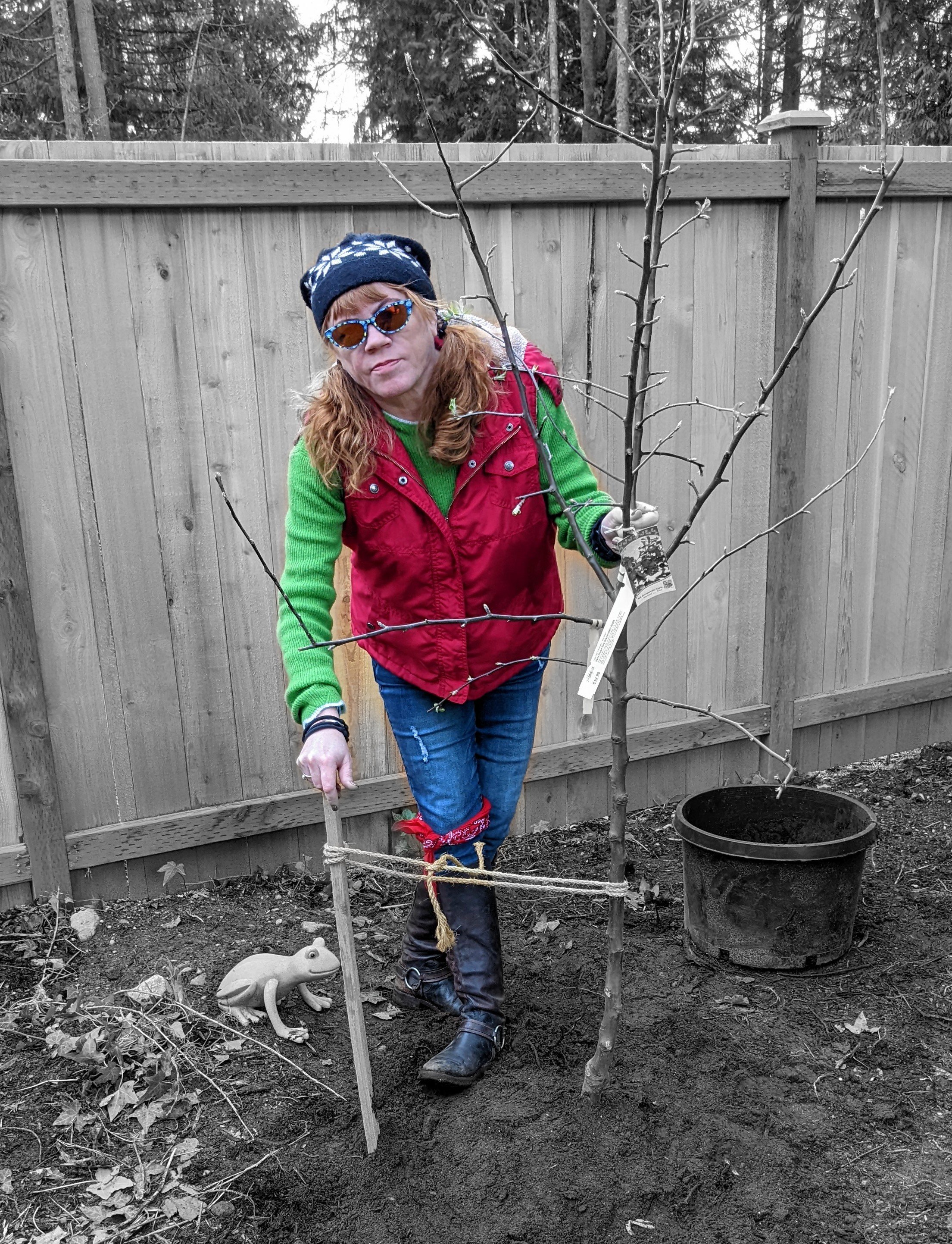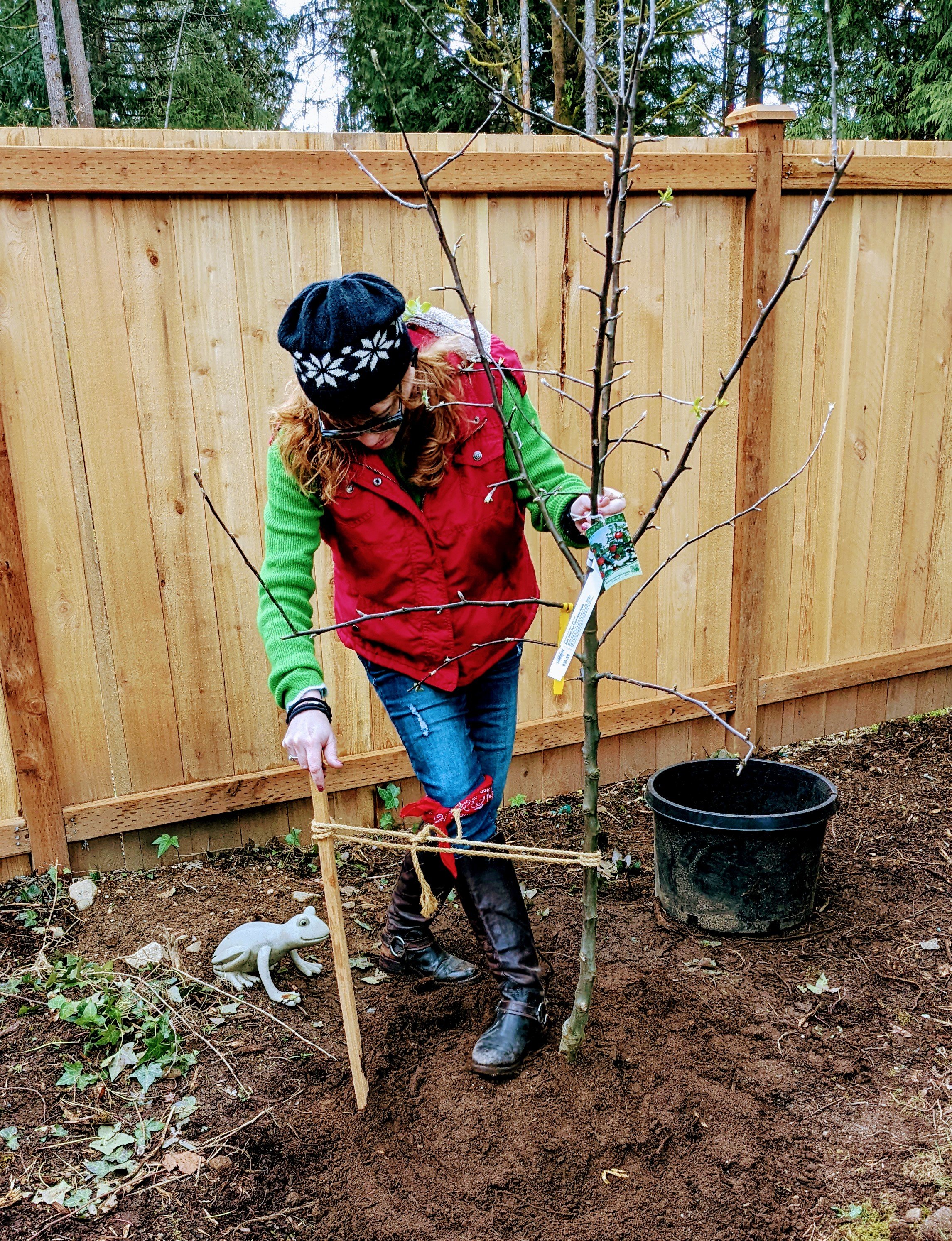 Today we planted a Gravenstien Apple Tree in our yard in honor of Sawdust Romeo, world’s best Black Lab. He passed in September of 2020. You can read my original post about that here, if you want to ugly cry.