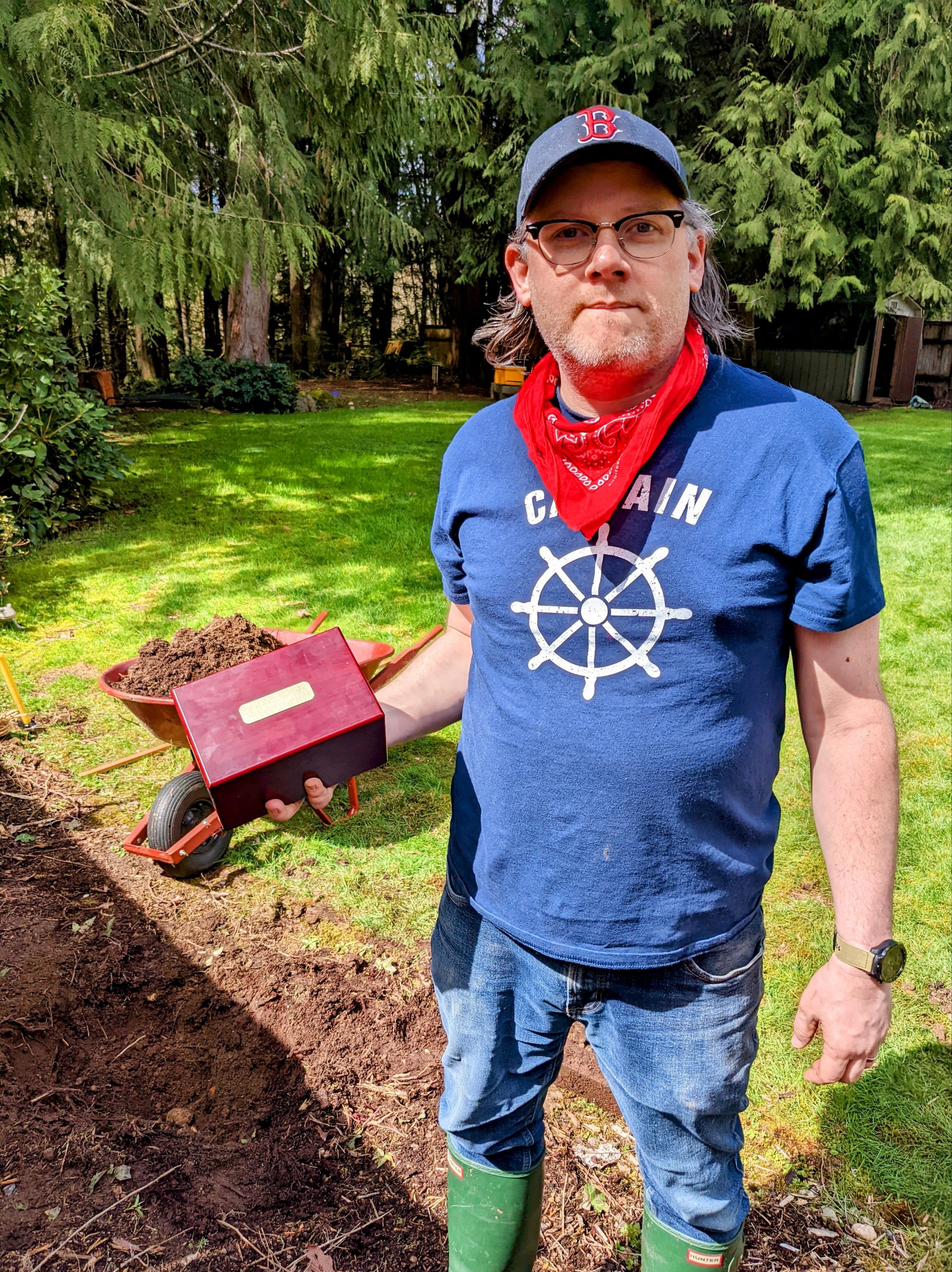 We shared memories all morning while we got ready for the planting of the tree. Then we stood at his apple tree spot and shared more. Loosely we followed our notes. We cried and laughed. We gave him his eternal cookies, added him to the soil, and sent him to his next place in the shade of an apple tree.