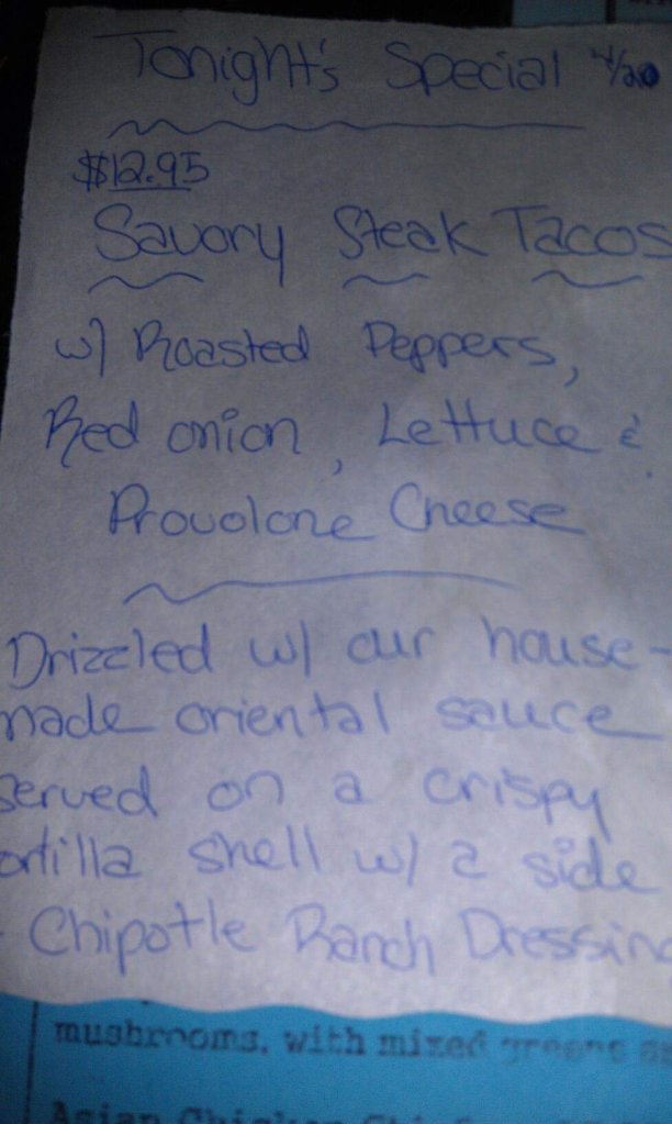 At the time of my sighting of this special, I wisely skipped ordering it due to my prior encounter with The Worst Burrito in Massachusetts.